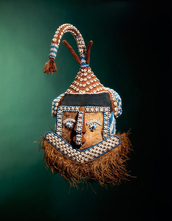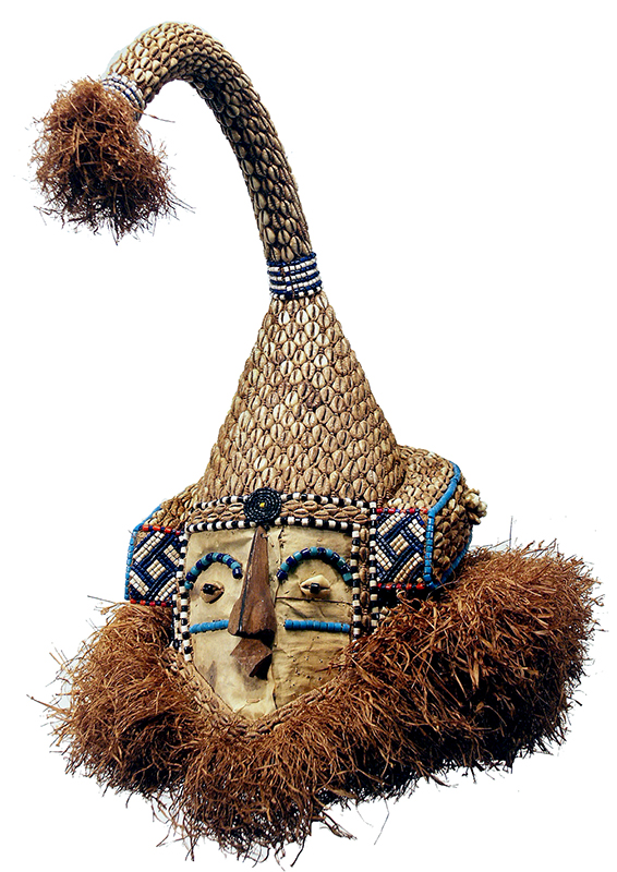 Het mukenga-masker wordt gedragen tijdens belangrijke initiatierituelen en begrafenissen van vooraanstaande personen. De overhangende sliert stelt de slurf van een olifant voor, het symbool voor kracht, rijkdom en leiderschap bij de Kuba.