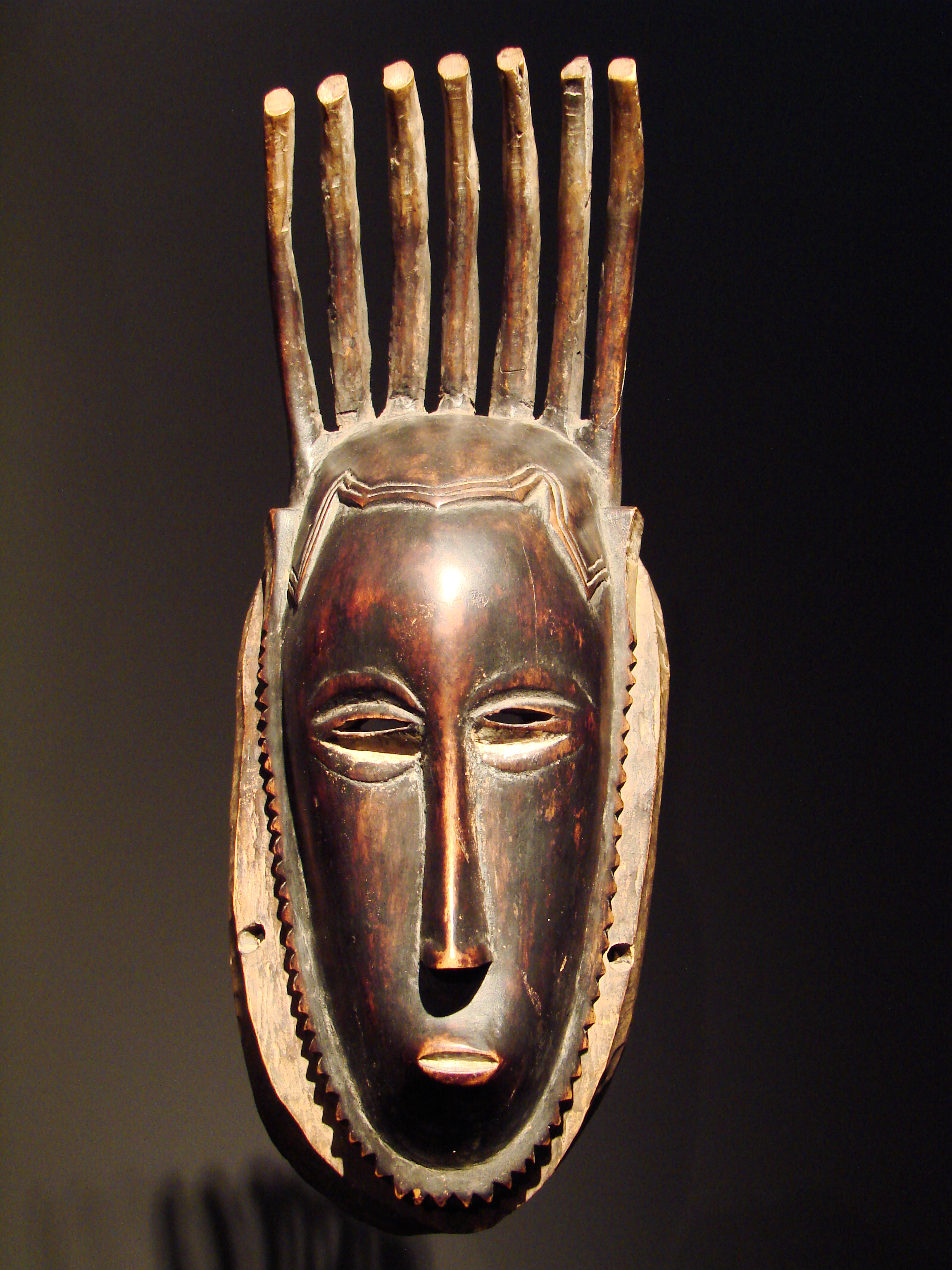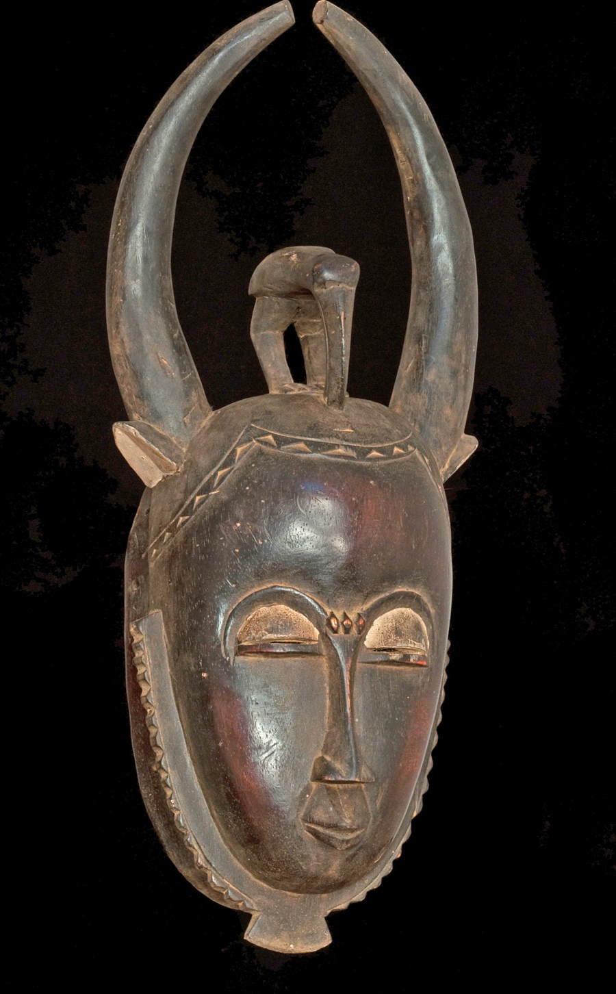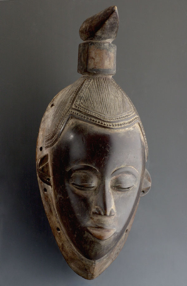 Dit masker stelt Gu voor. Zamble, Gu en Zauli zijn drie maskerwezens die vaak gezamenlijk optreden bij verschillende rituelen, feesten en danscompetities. Zamble is mannelijk, met het uiterlijk van een antilope en een luipaard, Zauli is Zambles groteske broer en tegenpool en Gu is de vrouw van Zamble. Het gezicht van Gu voldoet aan het schoonheidsideaal van de Guro: een langwerpig gezicht met een kleine kin, een smalle neus en een geschoren haarlijn. De maskers zijn in het bezit van families die hieraan een bepaald prestige ontlenen.