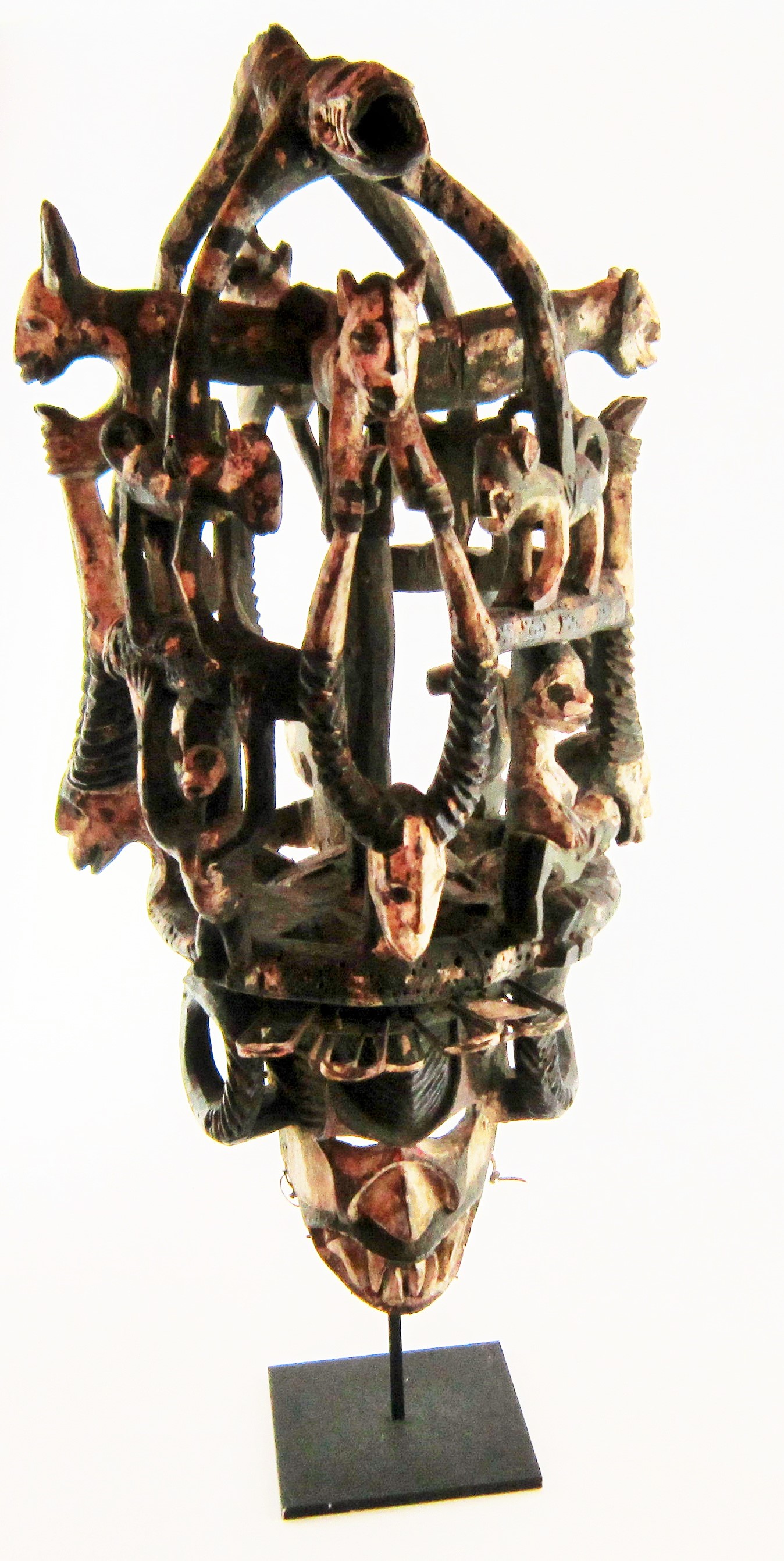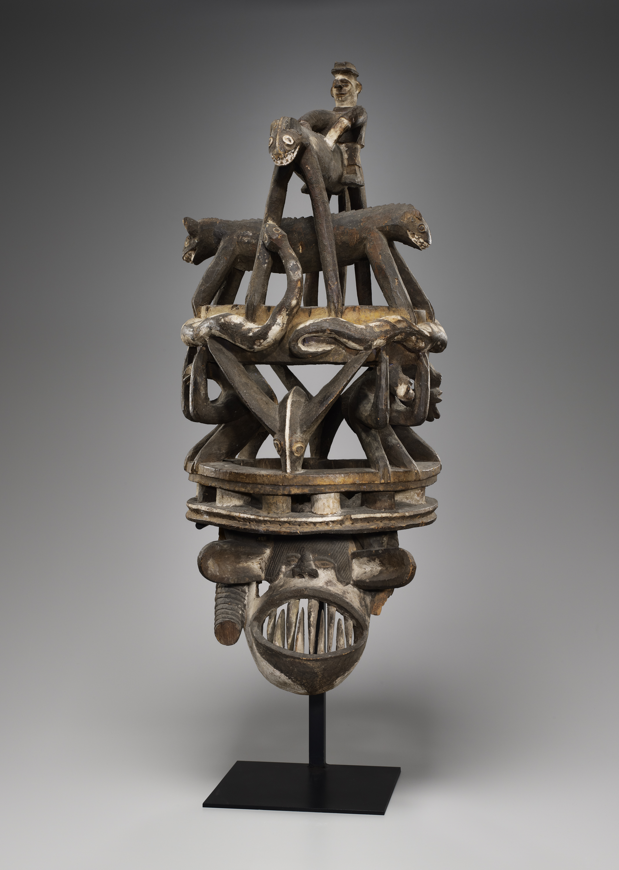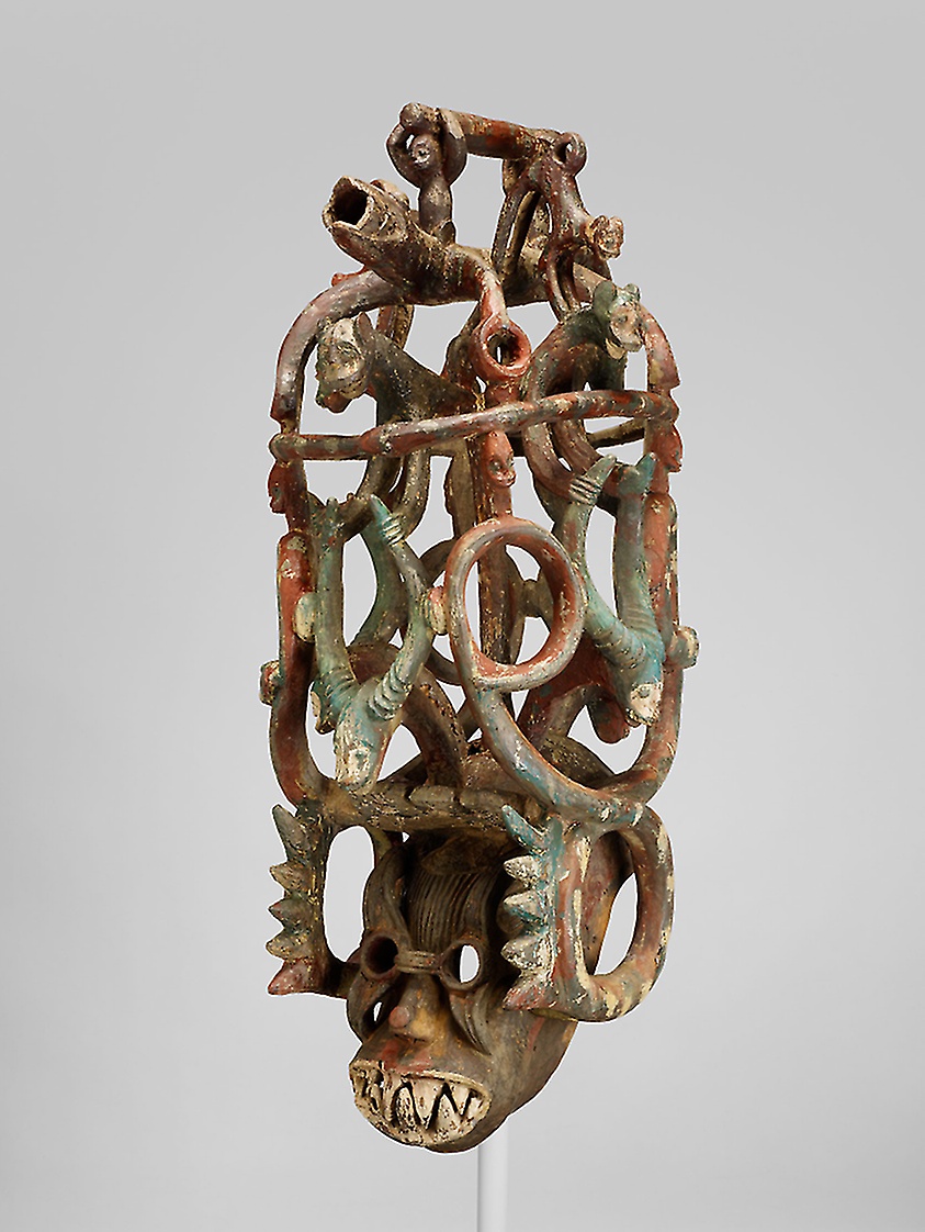 Een Mgbedike-masker verbeeldt een krachtige en agressieve natuurgeest wordt gekarakteriseerd door grote tanden, horens en een open structuur waarin verschillende dierlijke- en menselijke figuren zijn uitgesneden. De naam betekent letterlijk vertaald ‘tijd van de dapperen’. De maskers worden dan ook gedragen door mannen tussen de dertig en vijftig jaar oud om hun kracht, moed en dapperheid te tonen.
